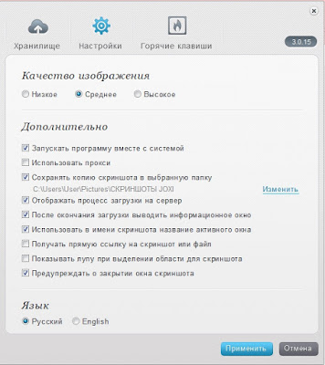 Можно настроить, чтобы скриншоты сохранялись в выбранную папку на ПК.